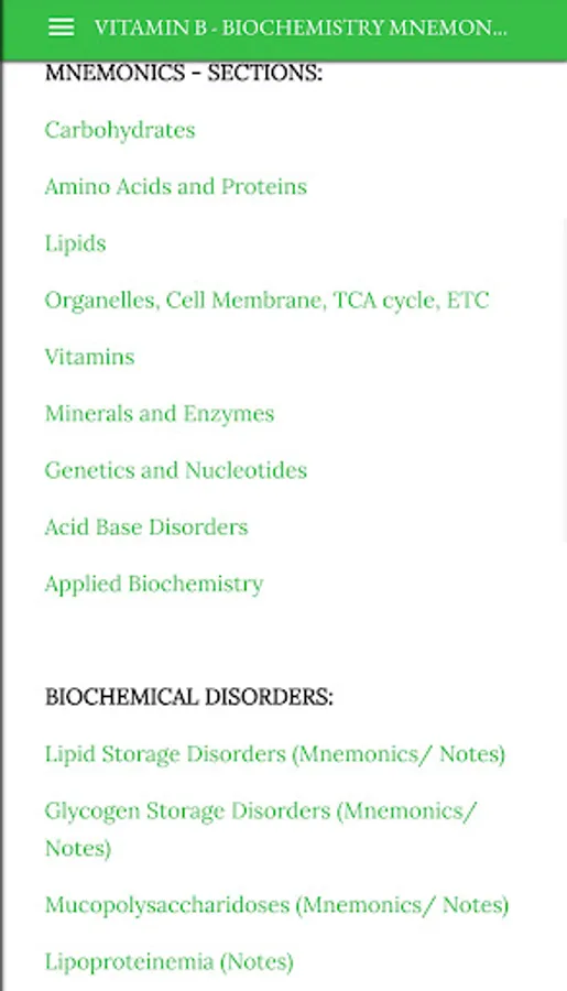 Biochemistry Mnemonics app has more than 100+ Mnemonics useful for both theory and PG entrance exam (NEET PG, INICET PG) preparations