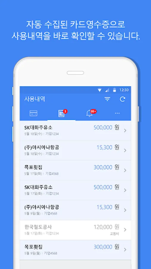 Collect corporate card receipts automatically, and write receipts used as cash as other (simple) receipts to easily handle expenses on your mobile!