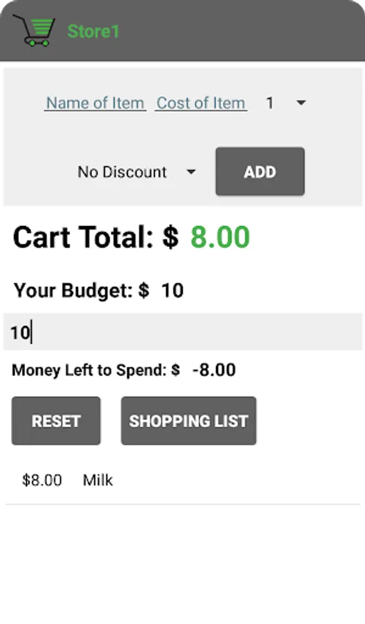 Keep track of your cart's total, and Budget Grocers will let you know if you are over budget! Enter your budget, and start adding items by name and price, delete what you wish by holding down that item and selecting "Delete." You can add individual Shopping Lists to your Main Lists.