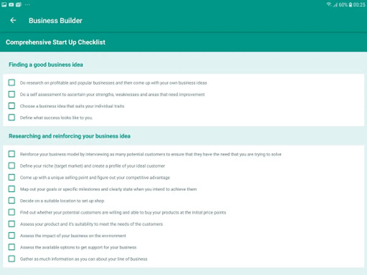 The Business Builder is a combination of book keeping and productivity tools for small businesses and aspiring entrepreneurs. The app is designed to help entrepreneurs handle the basic administration of their business. The app comes with multiple checklists and guided business activities to help you start and grow your business. We know that with limited funding during the start up phase, starting a business can be quite hectic, not to mention expensive. The Business Builder App will help you be your own bookkeeper, accountant and marketer when funds are limited.