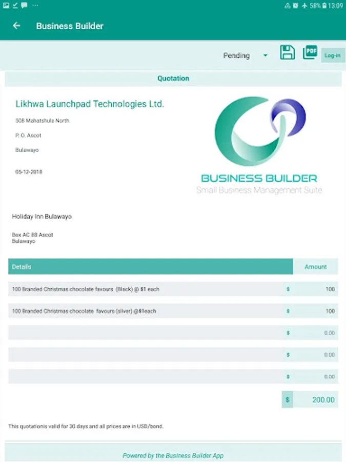 * Create PDF documents such as quotations, invoices, receipts, payment vouchers, company profiles and more.