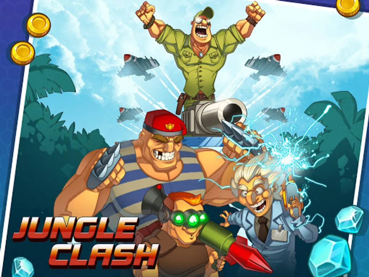 Jungle Clash is a new online strategy game with dynamic real-time PvP battles and captivating MOBA elements. Collect a unique deck of your best-loved fighters, armored vehicles and defenses from the mobile hit Jungle Heat, smash enemy Towers into splinters and achieve glorious victories in an engaging struggle with rivals from all around the world! The situation is highly dangerous and this urgent report from the theatre of military operations serves as direct evidence. “Yesterday we heard strange sounds coming from the heart of the jungle – apparently some fierce battles are constantly raging there. Our scouts stopped coming back to our base for some reason and Captain Blood has ordered tons of popcorn instead of new rifles and shells…” It seems like something truly spectacular is going on over there. It’s the best moment for a sudden attack – charge and join brutal fights in the jungle where only you can make a difference!