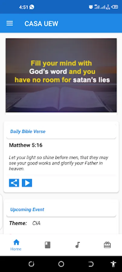 This application provides a means to get up to date information about CASA-UEW and its Activities. This app is packed with powerful content and resources to help you grow and to help you reach our mission of sharing God’s grace and truth so that people would come to know the love and serve our King Jesus.