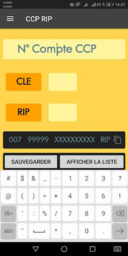 CCP RIP is a free application for calculating the Key and RIP of a postal account CCP, you can also register your calculated accounts with the necessary information to know the name of the owner of the account, his phone number and his address for used at all times, the application allows you to save an unlimited list of CCP accounts
