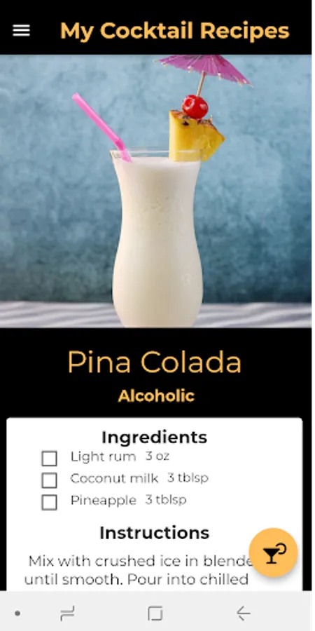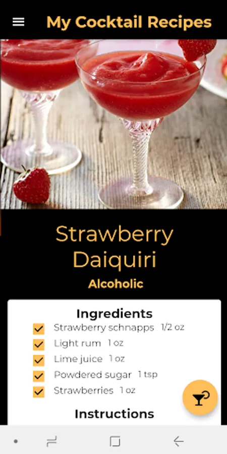 My Cocktail Recipe is a recipe app with over 500 different cocktails for you to try! Our app contains a selection of the most tasty drinks from around the world. The recipes are quick and easy to prepare.