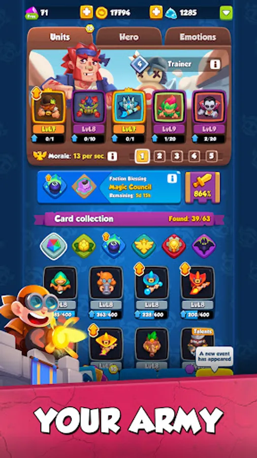There are many factions in the game, from Technogenic Society to the Kingdom of Light, and every unit and hero belongs to one of them. There are no “weak” or “strong” decks - collect, merge, learn to play your army well and level up units you use most. Some of them can Ascend, gaining unique battle talents!