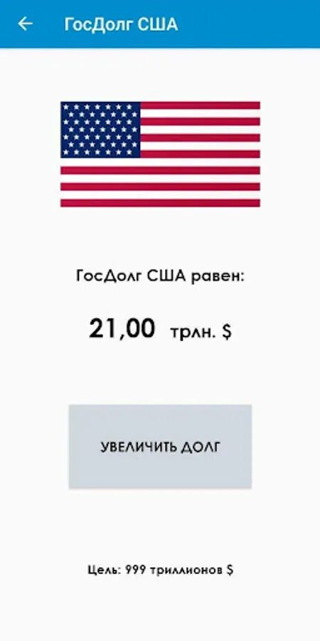 Take control of the world’s economy, manage government debts of leading world powers, ruin them or, on the contrary, make them rich. Have you seen the US national debt? If not, then it's time, download and play faster!