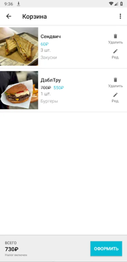 Application "Drinks burgers" for ordering burgers in Grozny.