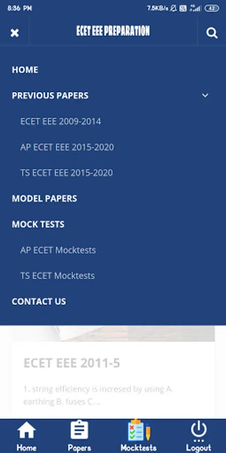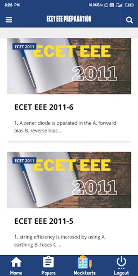 ECET EEE Preparation app provides APECET (Andhra Pradesh Engineering Common Entrance Test) and TSECET(Telangana State Engineering Common Entrance Test) EEE previous year papers with solved solutions from past 10 years