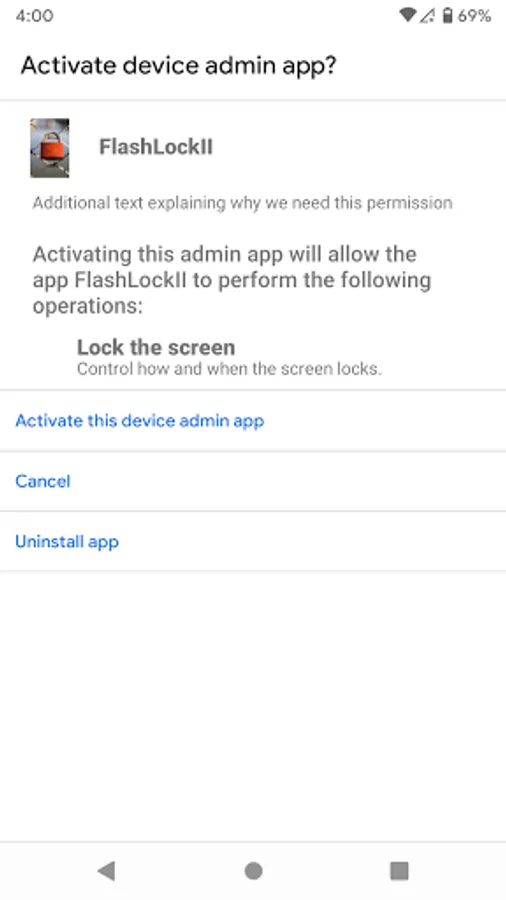 We have enabled the option to lock the device completely with a click of button, provided the user has given device admin permission to the application. This feature will not work unless the user trusts our application, and allows device administration allowance. There is a permission box, which will open up when clicked for the first time. If given approval, then the box would not show up again. We can give you assurance that we have not added any external adware or bloatware to our application, and this permission is strictly to assist the user to take control of their device with a click of a button.