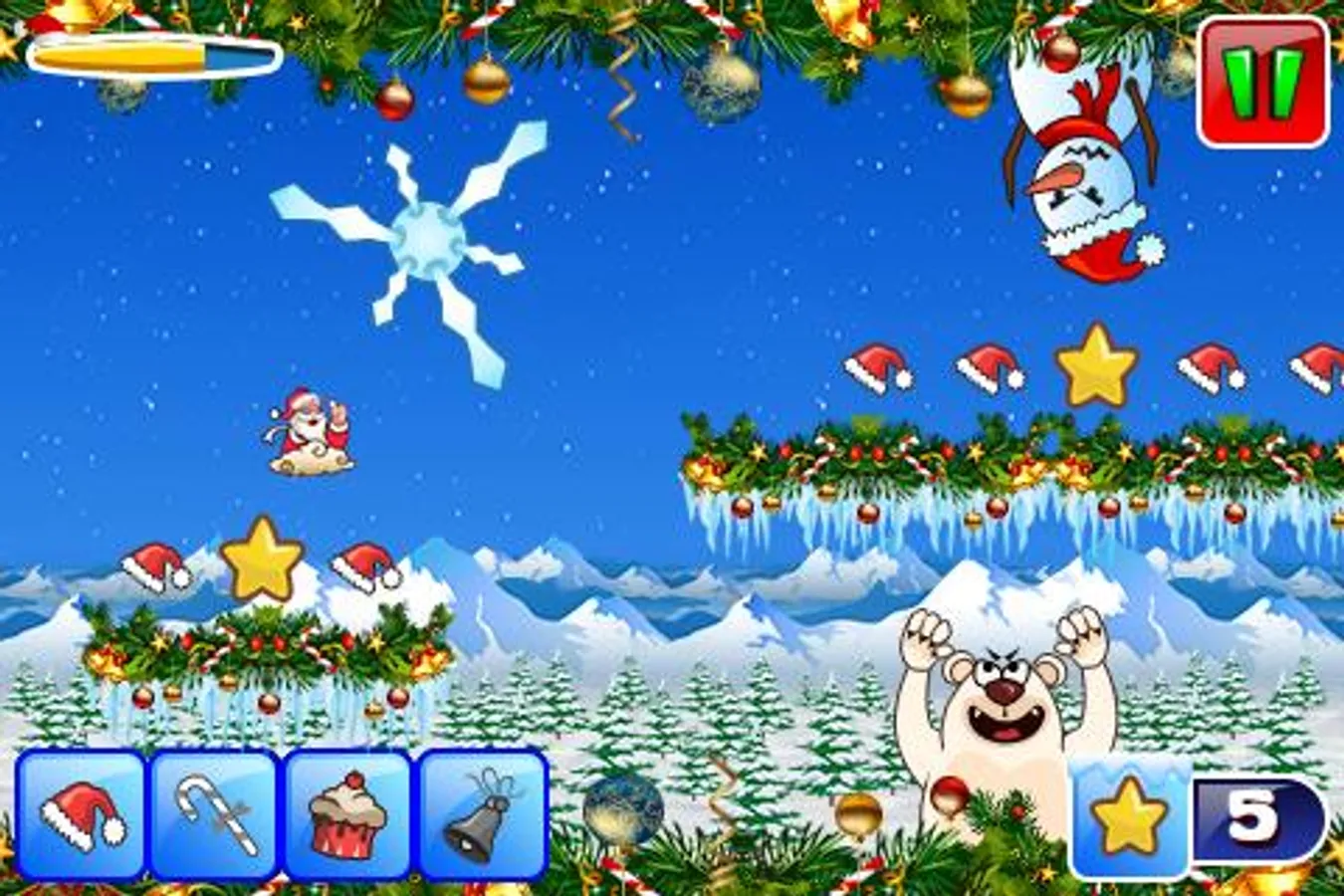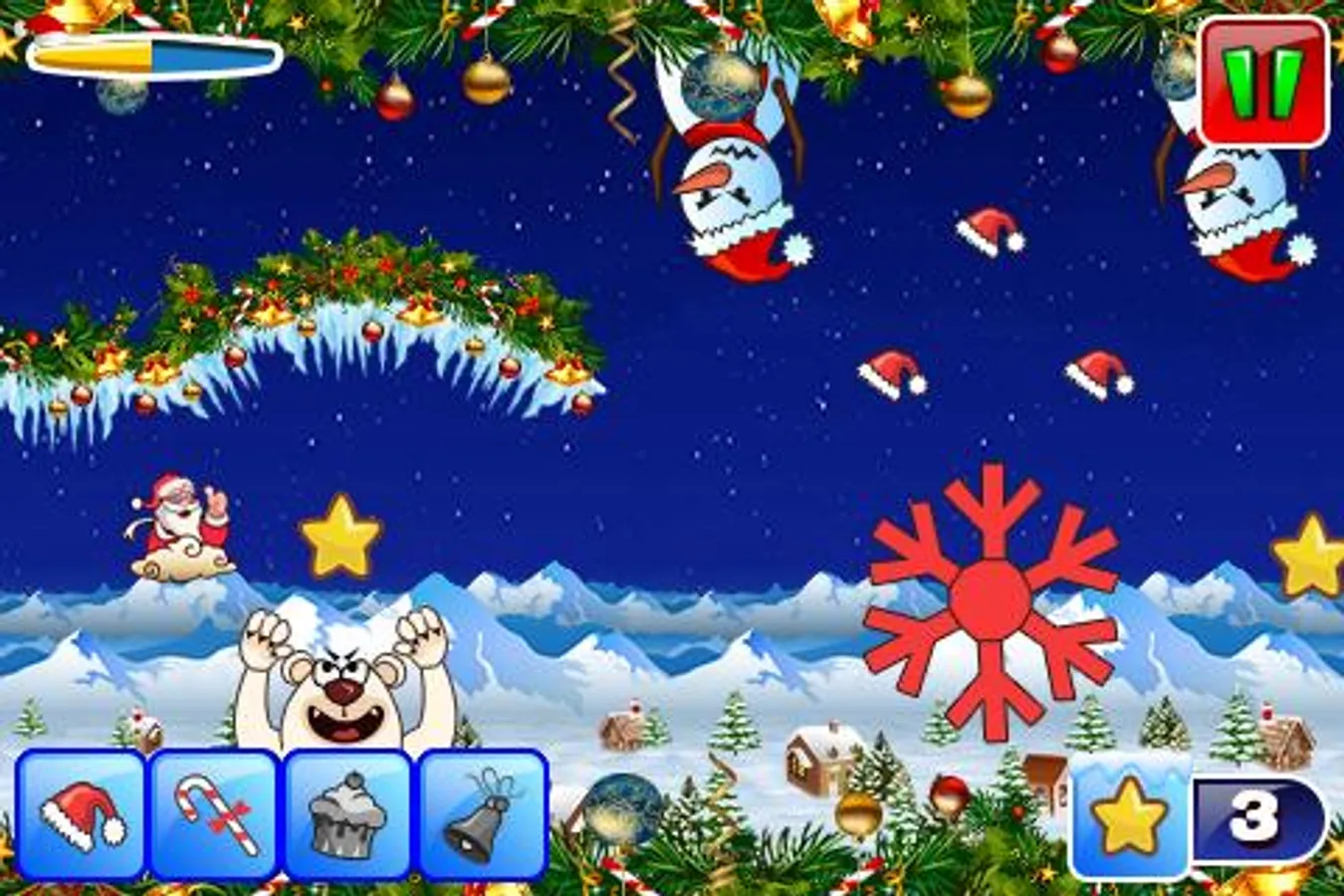 Play the adventures astonishing game Xmas Santa Show. Help Santa to fly and collect gifts and stars, fly across the North Pole and collect gifts and stars for people. Help Santa to fly without crashing with polar bear, large snowman, poisonous flying bats, deadly monster fans, falling stones and more. You will have the powers, like candy, cake, juice etc, to fight against foes, use these powers in difficult conditions to cross each stage. There are amazing and awesome levels designed with a great artwork to entertain you. Download and enjoy this fabulous game.