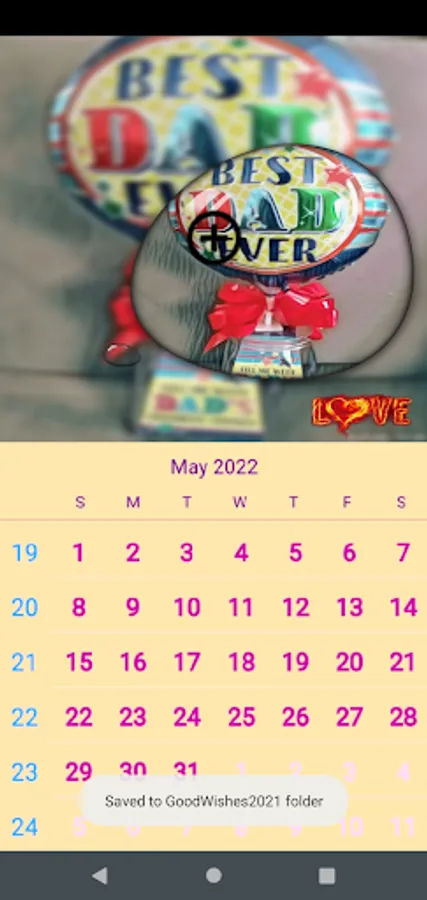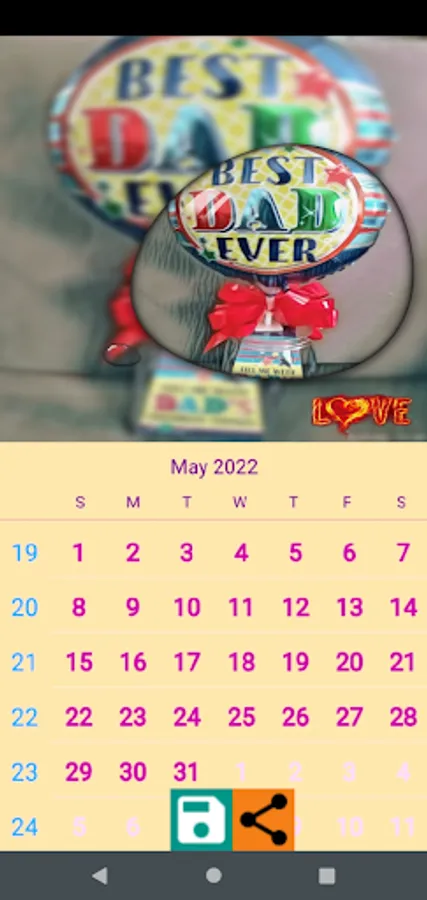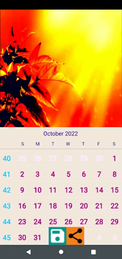 This app offers a simple way to create your own customized calendar for the twelve months, and save it either as a png or jpg file. In addition, this app also offers the option to share the created image file to your friends and family on a click of a button.