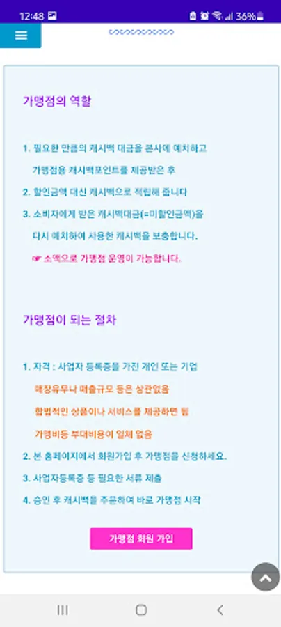 1. Affiliates deposit cash back points at the head office and secure cash back points. (1 point = 1 won)