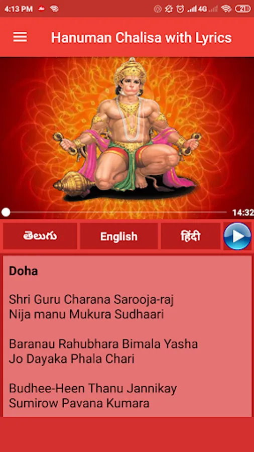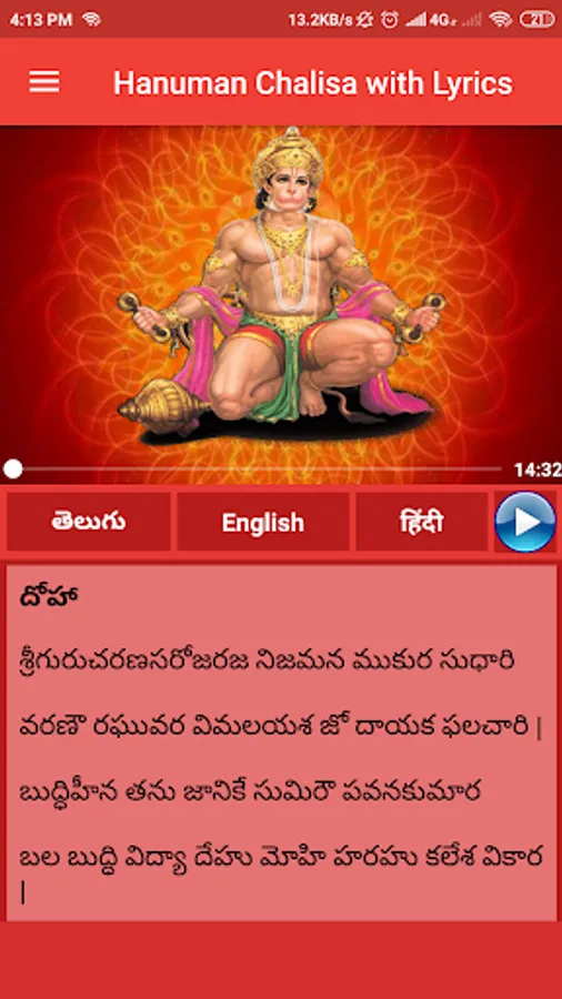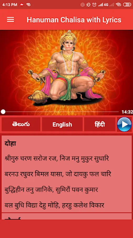 Hanuman chalisa song with lyrics in telugu, hindi, english