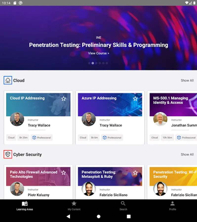 INE provides unparalleled flexibility and value for all your IT training needs. This mobile portal provides access to INE’s large library of networking, cyber security, data science, and cloud computing courses and quizzes. Easily access in-depth training on the industry’s most popular topics like software-defined networking (SDN), Microsoft Azure, Python, penetration testing, and an extensive range of Cisco certification training - including CCNA, CCNP and CCIE - across a wide variety of tracks. Access your training anytime, right at your fingertips.
