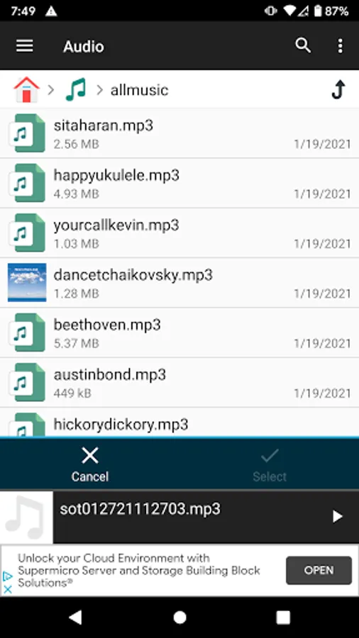 4. Easily select the shortlisted mp3 file by just clicking the file of interest