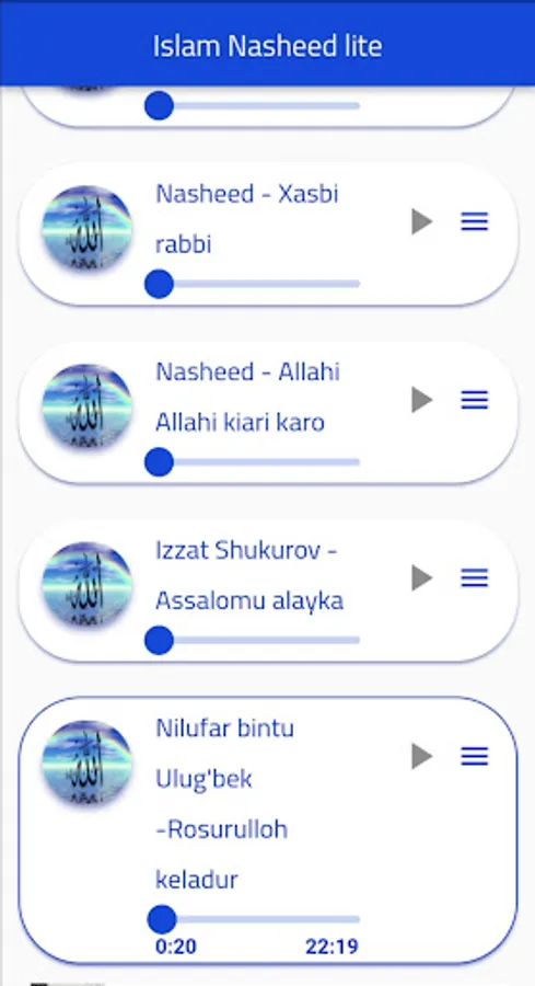 THIS application has a number of 20 = Islamic songs, very beautiful voices, for the brains a good rest.