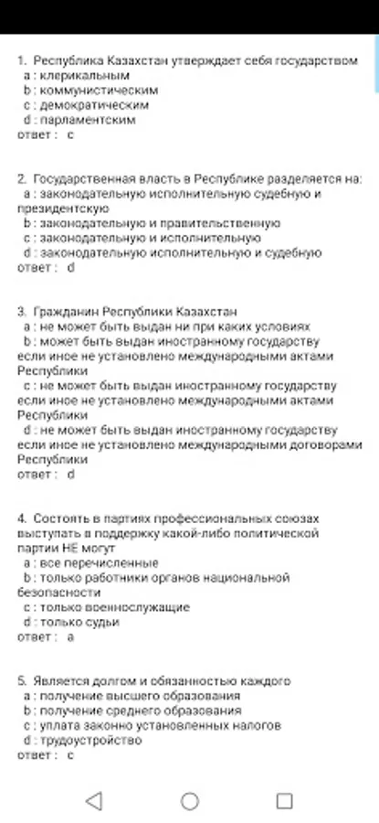 The Constitution of the Republic of Kazakhstan is a test that includes 360 questions for passing a trial test for knowledge of the Constitution of the Republic of Kazakhstan, candidates entering the administrative civil service in Corps B.