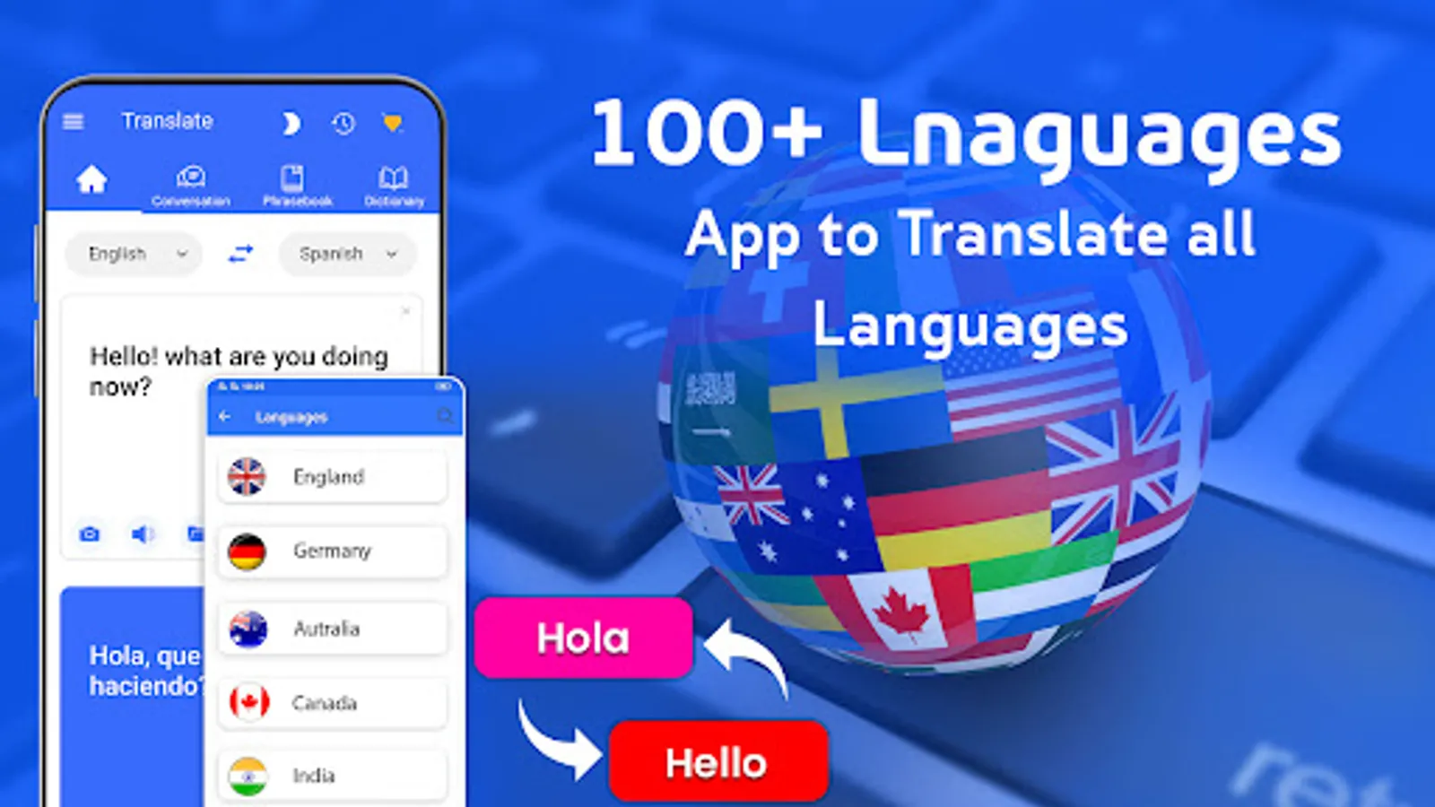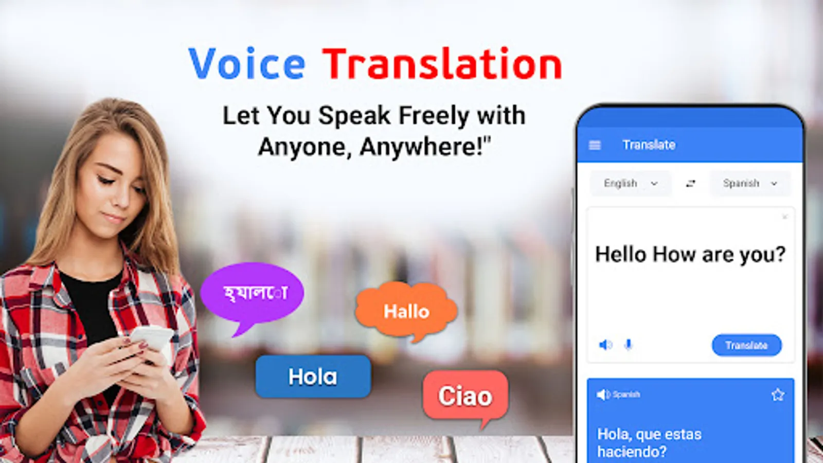 ✔ Translate in worldwide languages.
