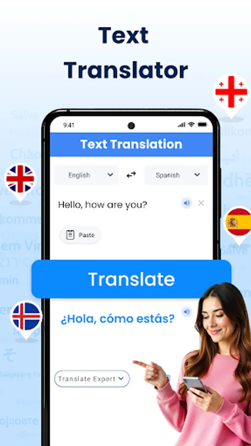 Language translator app provides the feature of a text translator that translates text into different languages. Simply type or paste words, sentences, or paragraphs, and get translations in any language