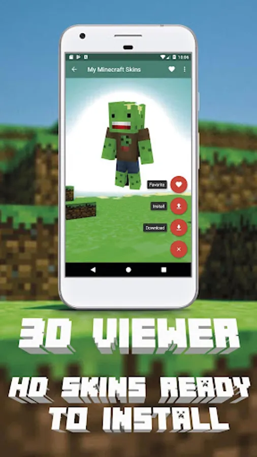 "My Minecraft Skins (MyMCSkins)" is not a 3d skins editor for Minecraft. It is an app that shows a catalog of categories and aspects of Minecraft to download and import into the game.