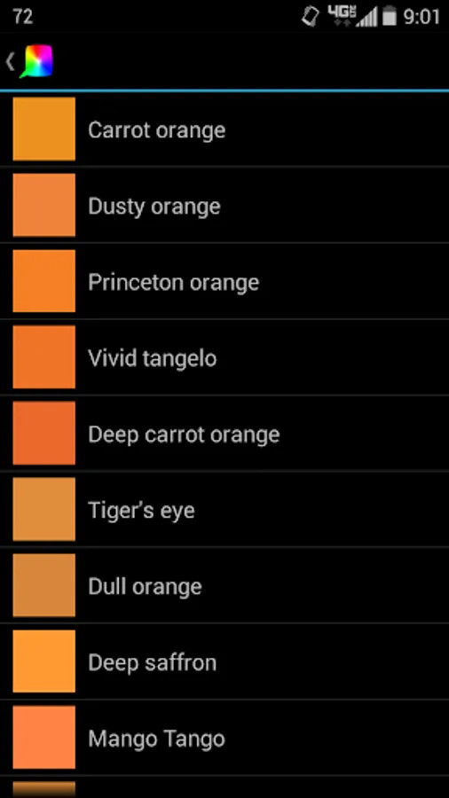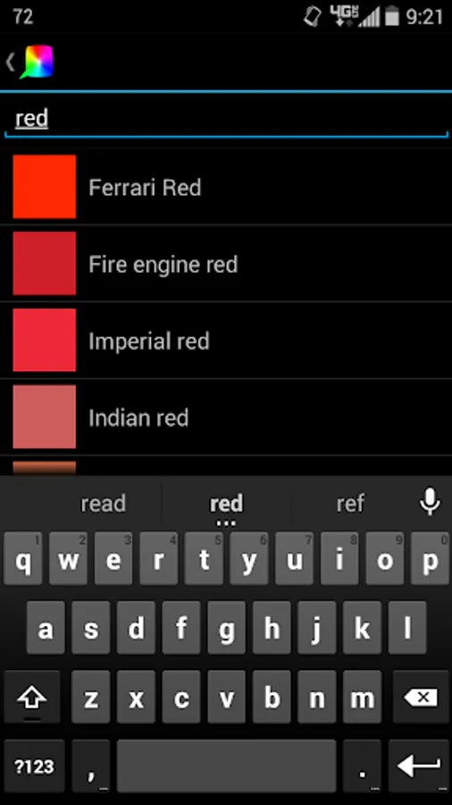 Note that the color you select may not be the "true" color name, as that would require millions of different names, but instead displays the closest known color name. Also, there are many real-world colors that aren't represented in the app due to the limitations of your screen. But I think you'll find that 1800+ colors is plenty!