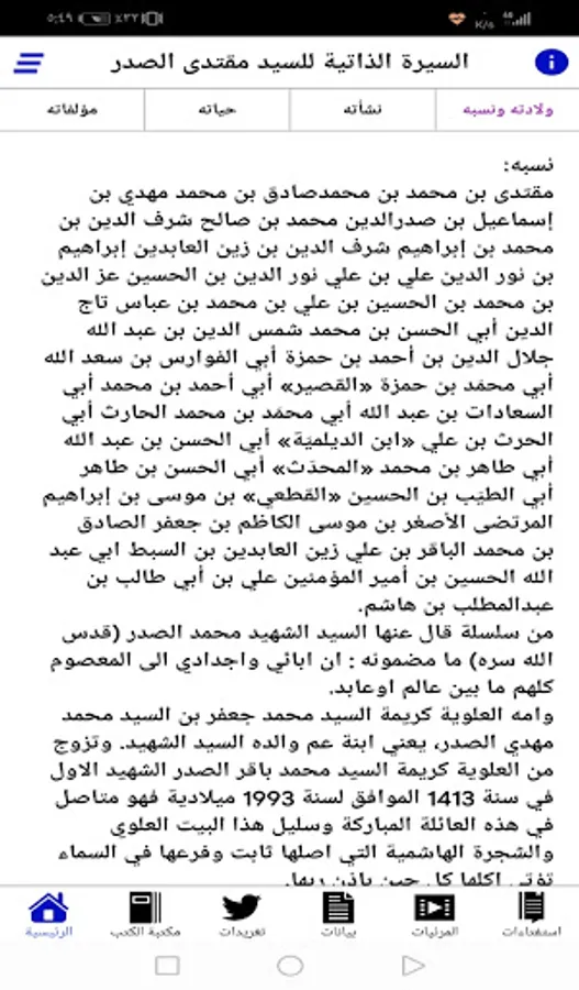 * The first section: The biography of the leader Sayyed Muqtada al-Sadr, may God bless him, and it includes