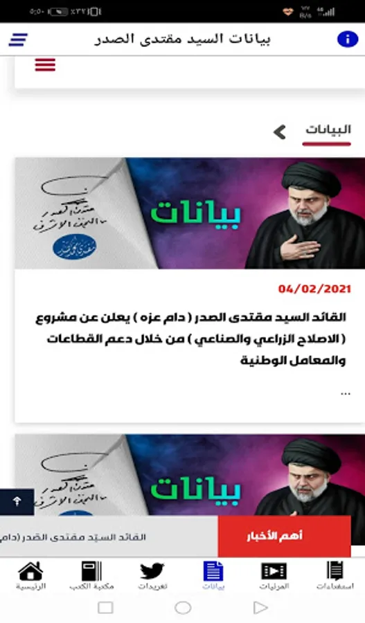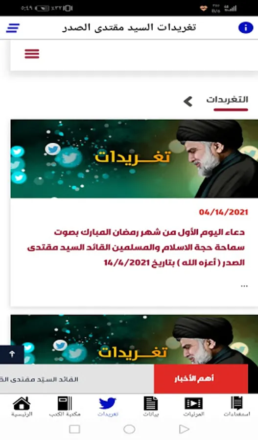 * The third section: the tweets of the leader, Muqtada al-Sadr, may God bless him.