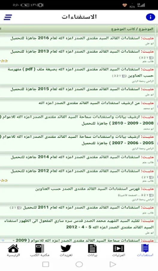 * The fifth section: Polls and statements of the leader, Mr. Muqtada al-Sadr, may God glorify him, taken from the site and forums of the Imams Mosque