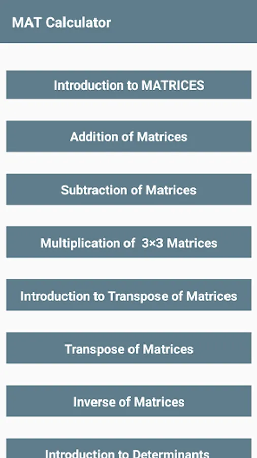 The user can perform Matrix Operations easily and fast by using this MAT Calculator App.