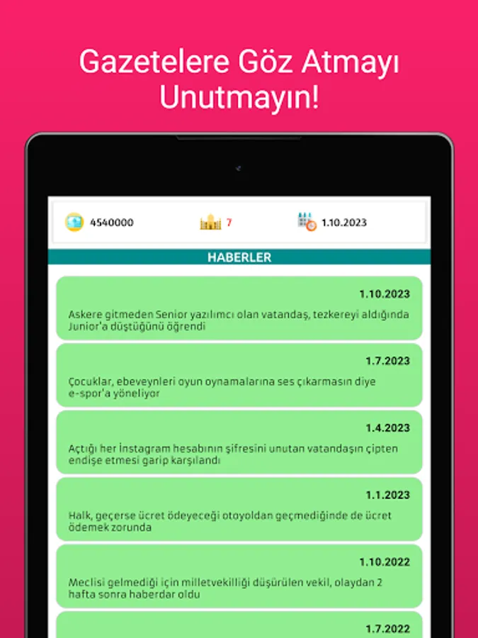 You will face rebellions, bankruptcy and many other difficult situations in this challenging journey. All of them have only one solution; Getting along well with all 6 groups! Don't forget to read the newspaper news to learn about the reflections of the decisions you made while running your country!