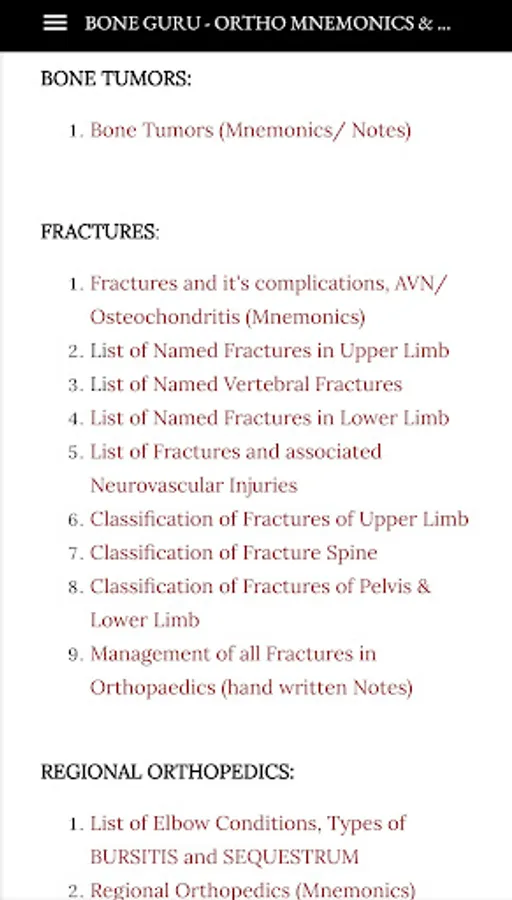 Orthopaedics Mnemonics app contains useful Mnemonics and Notes for Medical (MBBS) students for their theory and PG entrance exam (NEET PG, INICET PG, USMLE PG) preparations!