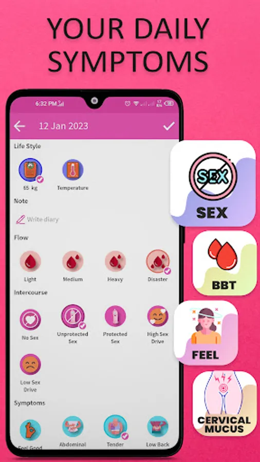 Whether you have irregular or regular cycles, Ovulation Calculator Fertility Tracker might be helpful. Your daily chance of becoming pregnant can be monitored. You can also keep track of your cervical mucus, BMI, weight, temperature, sexual activity, symptoms, or moods. Consider it your own menstruation diary. You'll stay healthy, lose weight, and become in shape thanks to it.