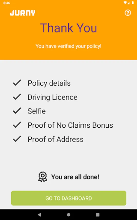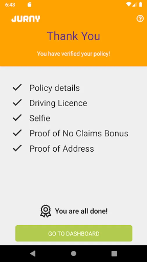 • Allows easy and fast validation of your JURNY motor insurance policy.