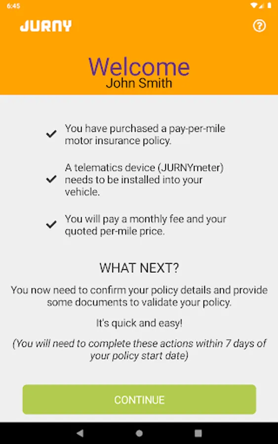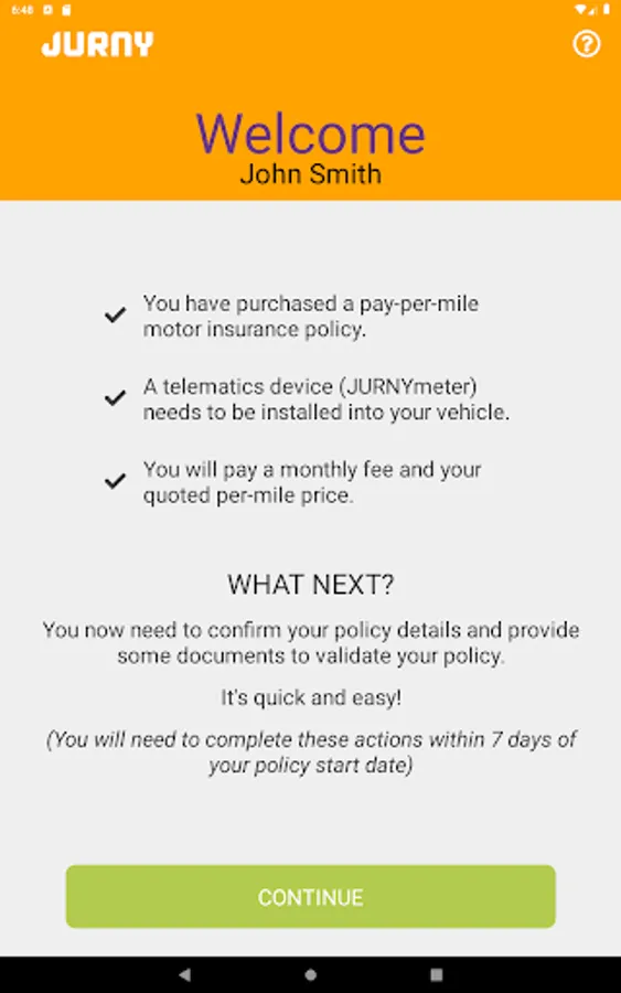 'The JURNY app will help you to manage your pay as you go car insurance product, that gives you complete control over your insurance costs. With a personal rate-per-mile, you know exactly how much each journey will cost you. Only pay for the miles you drive!