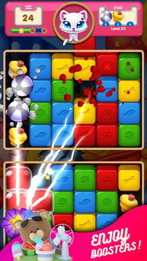Combine any 2 boosters to generate great effects and reach high scores. Join this puzzle game to beat challenging levels in an adventure bursting with difficult puzzles to solve and find your hidden talents in solving puzzles and block blast your way to victory.