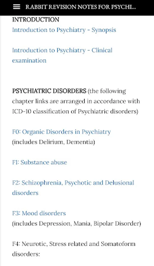 Psychiatry app contains useful Notes and Mnemonics for Medical (MBBS) students for their theory and PG entrance exam (NEET PG, INICET PG, USMLE PG) preparations!