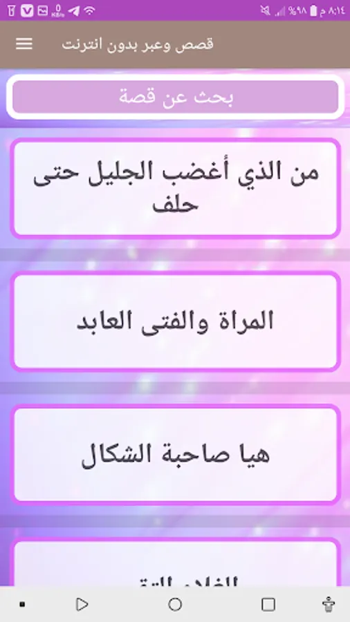 The application offers a variety of short and interesting stories, including wisdom stories, proverbs, short stories of encouragement and motivation, religious stories and many more. The application is characterized by its simple design and ease of use, which makes it suitable for all age groups.
