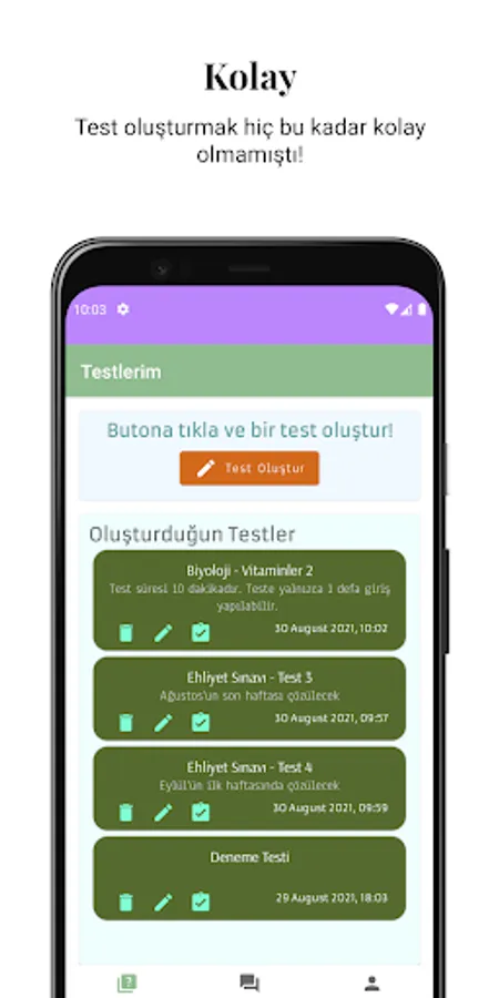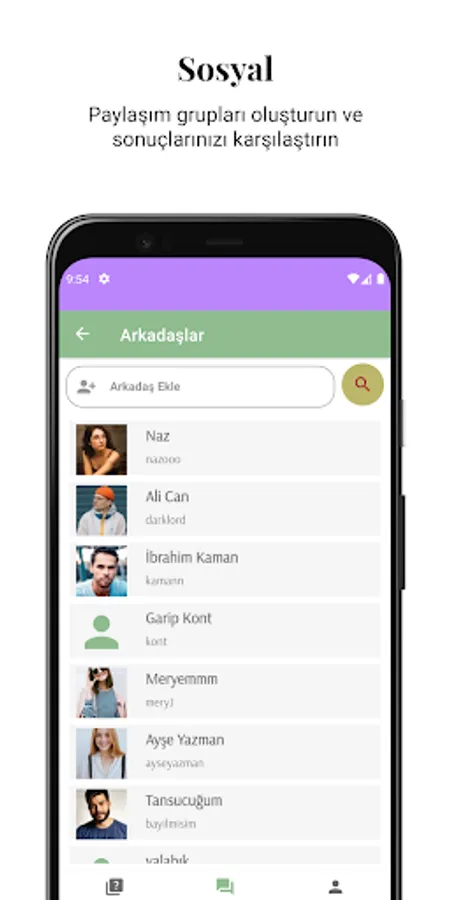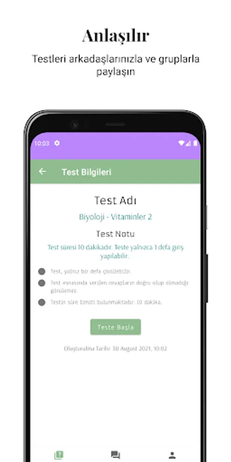 You can share the tests you have created with your friends or groups, and view the results of the users who have solved the test.