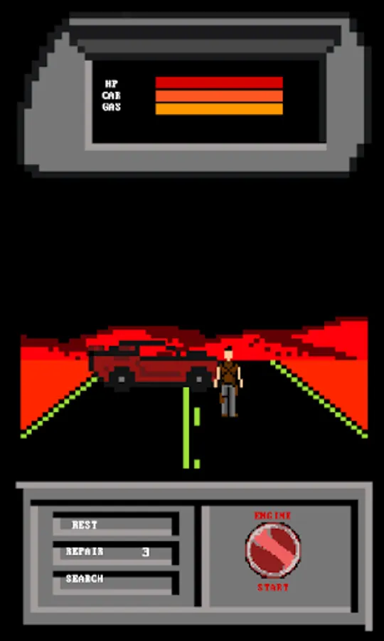 - Search for food, fuel, and other supplies (NO CRAFTING).