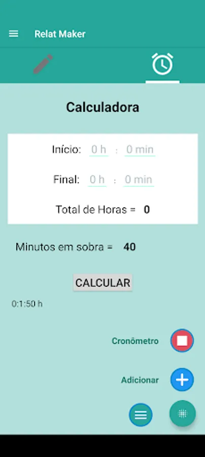 Enter the start time and end time. The app will automatically calculate the hours that have been made.