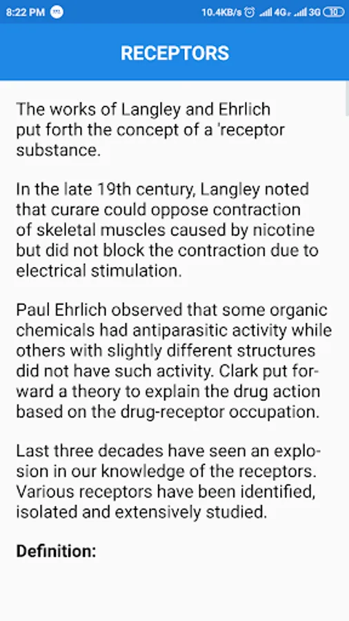 This is an app with knowledge of pharmacology, which is useful for B.Pharmacy, Doctor of Pharmacy, MBBS, Nursing and Dental students. It provides basic pharmacology concepts which is very much useful and linked to subjects like clinical pharmacology, toxicology, clinical pharmacy, hospital pharmacy etc. The app gives a short and easy view to study pharmacology.