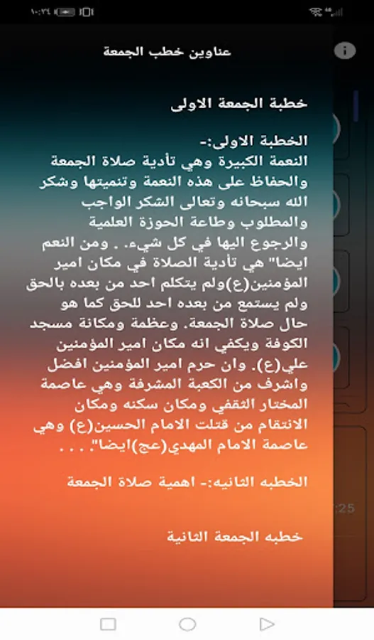 The application also contains the titles of Friday sermons.
