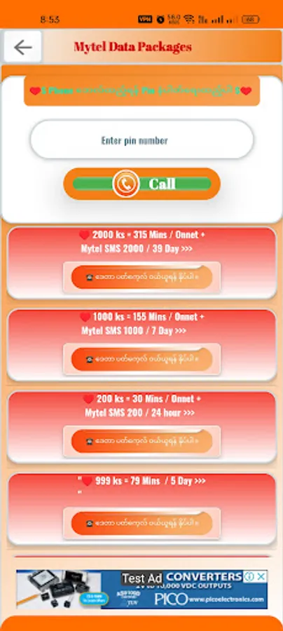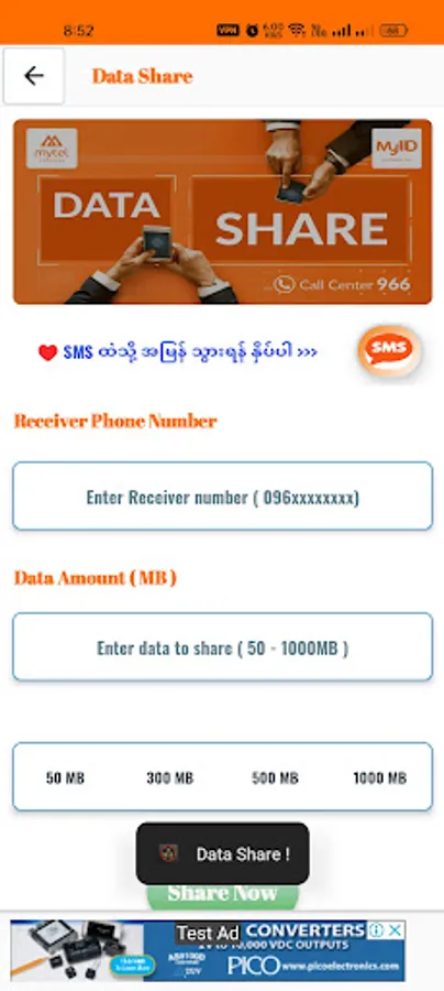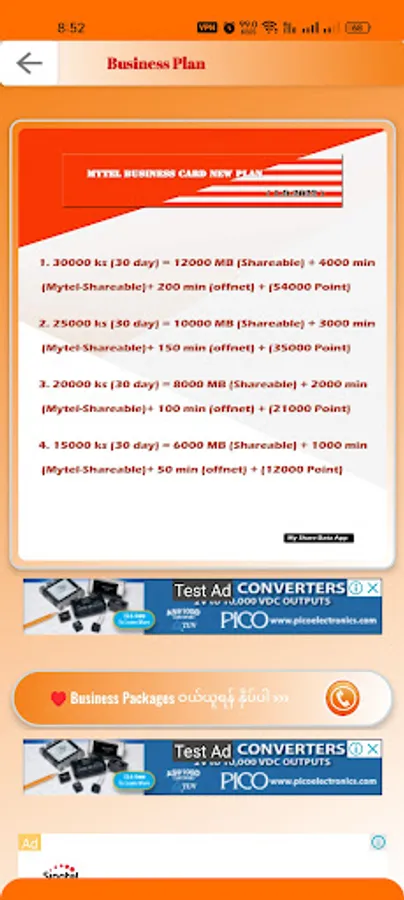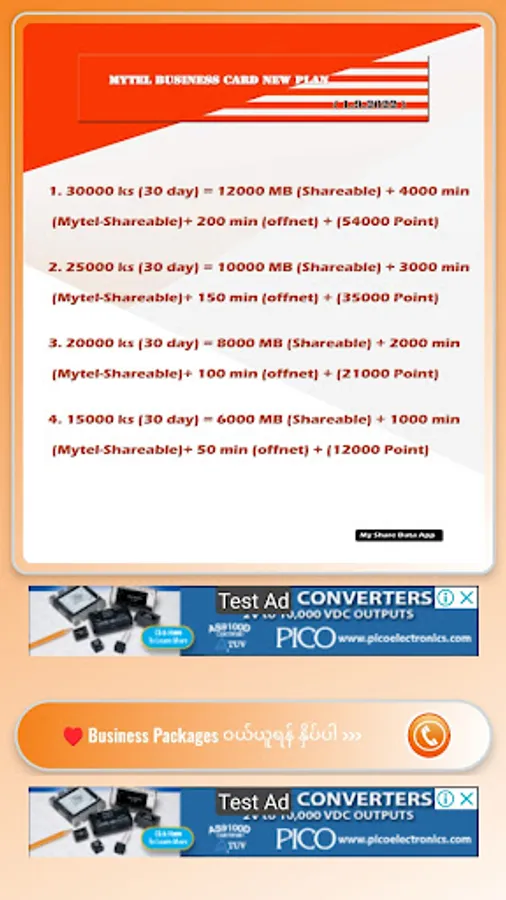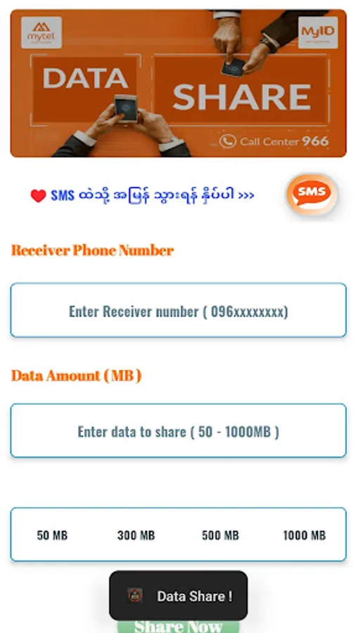 You can easily buy Data Packages / Mytel My Business Card MB Data. Phone number can be easily checked. Mb balance can be checked. Data packages can be easily missed