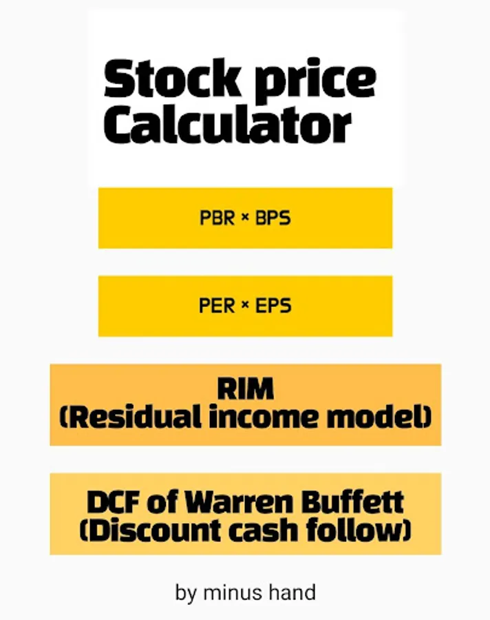 This app ia stock price Calculator. DCF of Warren Buffett, RIM, per, eps, pbr, bps is included. No ad Version.