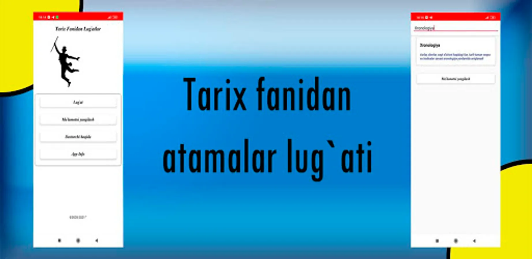 Tarix fani o'rganuvchilari uchun juda muhim bo'lgan qulay lug'at dastur.