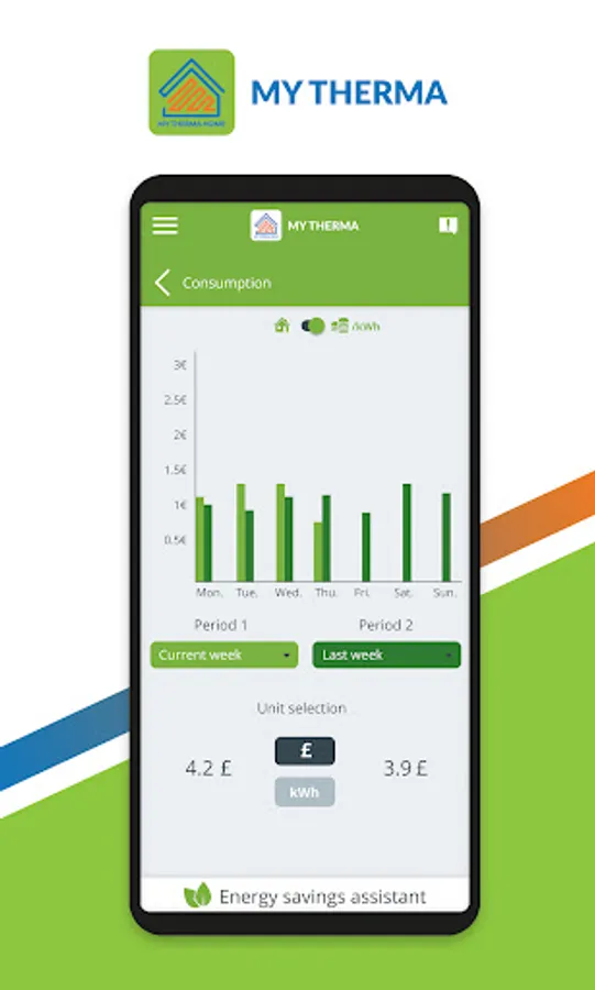My Therma allows you to control, understand and analyse your consumption with the help of simple and detailed graphs over a given period (day, week, month, year).