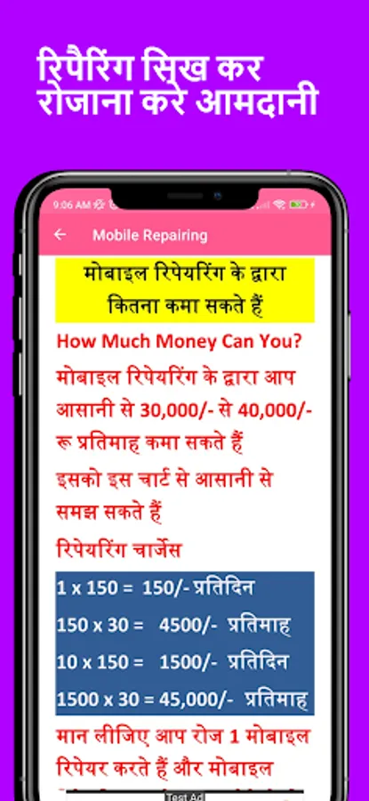 You will also get knowledge about hardware and software by reading mobile repairing course offline hindi app. This is fully free mobile repairing course app, You don’t need to pay now for theory of mobile repairing, You can easily access of our mobile repairing course offline hindi app for all listed function for free.