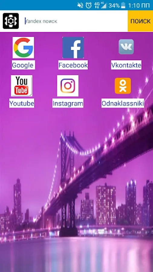 Convenient browser for android. All social networks of the application are included in the mobile version. Instagram, Vkontakte, Odnoklassniki, Facebook, Twitter - all password autosave browser. Convenient, simple interface.