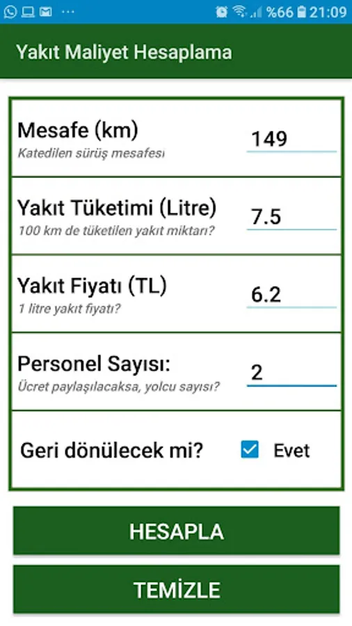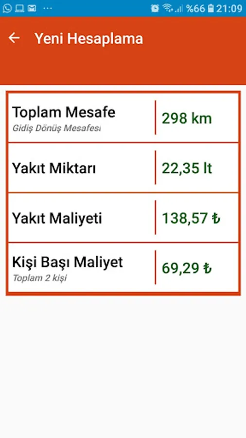 - If the fuel cost is shared among the passengers, it shows the amount per person.
